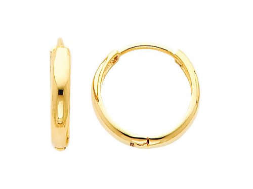 Buy Now! 14k Yellow Gold 2mm Thickness Domed Hoop Huggies Earrings (0.5" or 13mm)